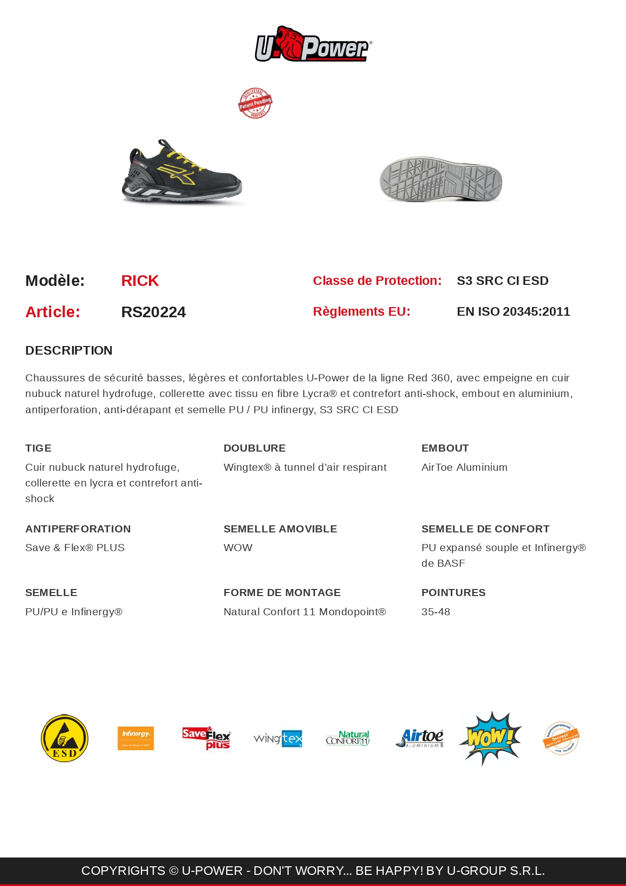 Chaussures de sécurité basses, légères et confortables U-Power de la ligne Red 360, avec :